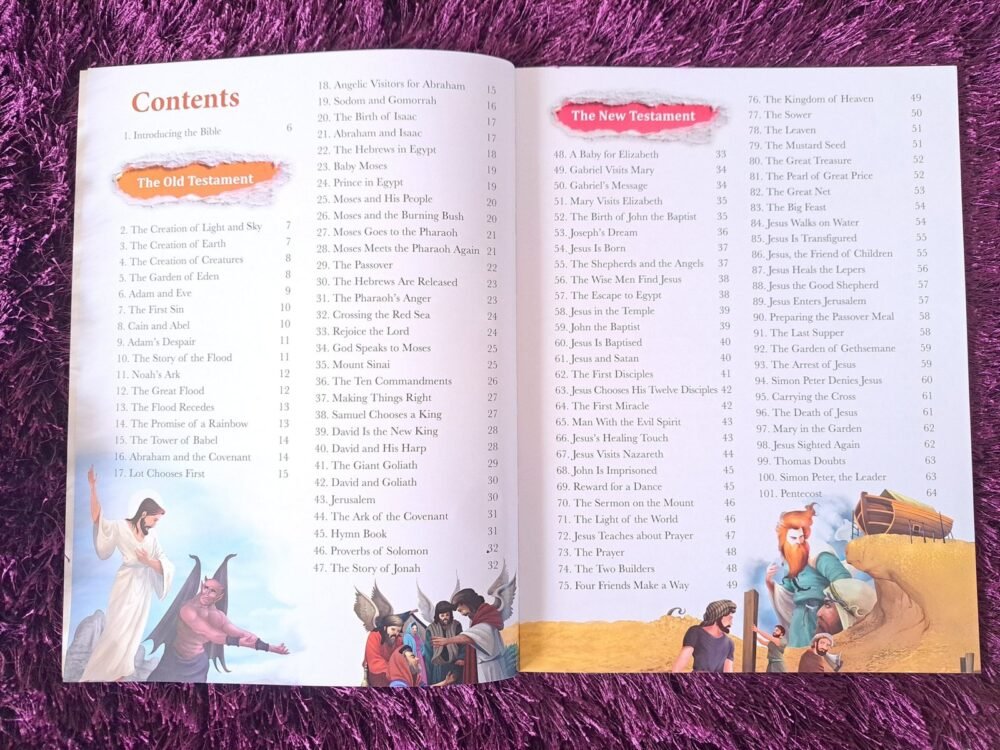 101 – Bible Stories is a thoughtfully curated collection of stories from the Old and New Testaments of the Bible, written in simple, engaging English that children can easily understand. From the Creation of the Universe to the miraculous acts of God, each story is designed to inspire faith, impart life lessons, and provide guidance for everyday challenges.