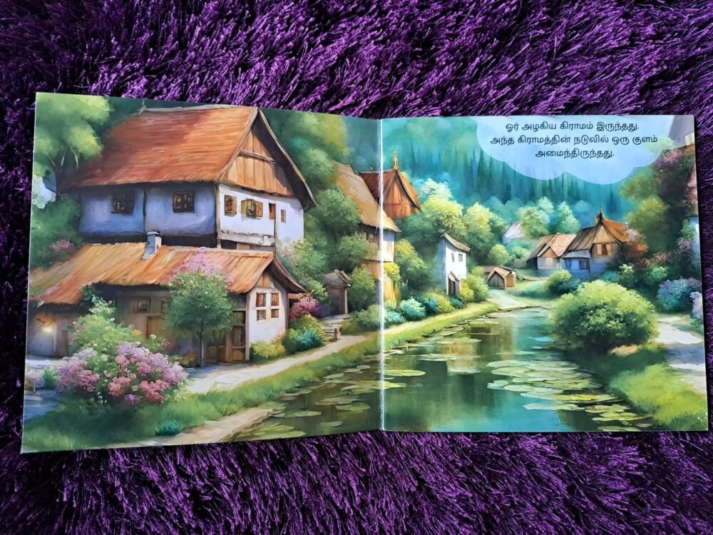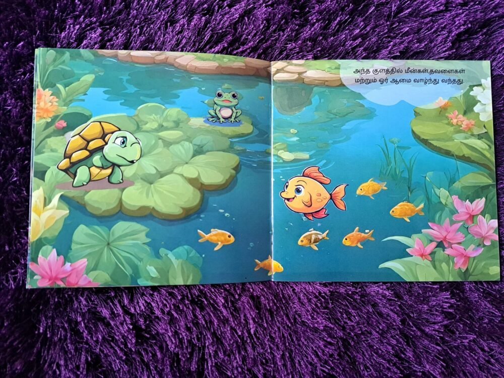 Printed on high-quality glossy sheets, the book features bright, colourful illustrations that naturally draw children into the story. The easy Tamil language helps young readers understand the message clearly, while the story gently encourages patience, kindness, and self-control.