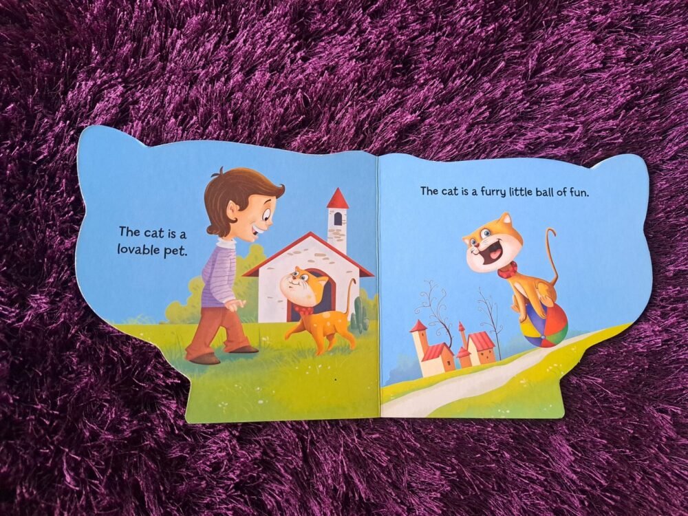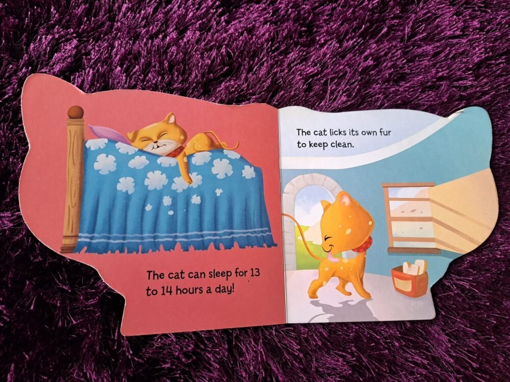 The adorable cat cut-out shape instantly catches your little one’s attention, encouraging curiosity and hands-on exploration. The thick board pages are gentle yet durable, making them ideal for babies and toddlers who love to touch, flip, and discover on their own.
