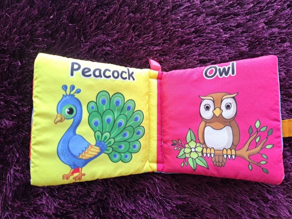 A soft, colorful cloth book for little hands! Introduces birds with bright pictures and simple words, making early learning fun, safe, and interactive for babies.
