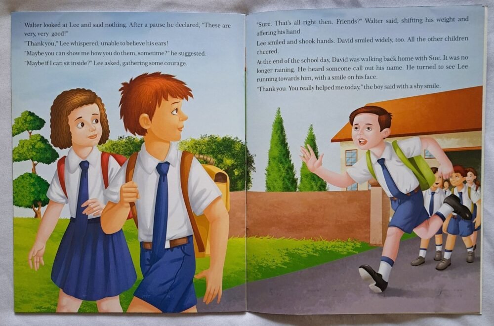 On a rainy school day, David notices his classmate Lee being bullied. Instead of joining in, he makes the brave choice to be kind and stand up for Lee. As the story unfolds, David discovers the joy and rewards of helping others, showing children that even a simple smile or helping hand can create positive change.