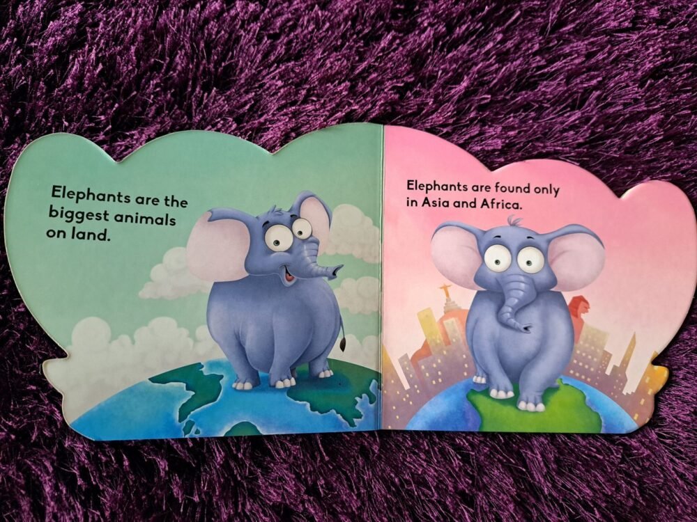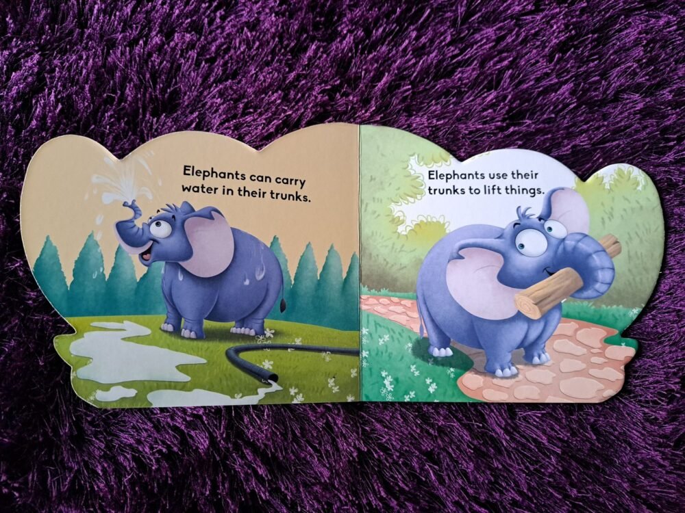 The charming elephant cut-out shape instantly grabs your child’s attention and encourages hands-on exploration. The thick, durable board pages are easy for tiny fingers to turn and strong enough to handle everyday play, making this book ideal for babies and toddlers.