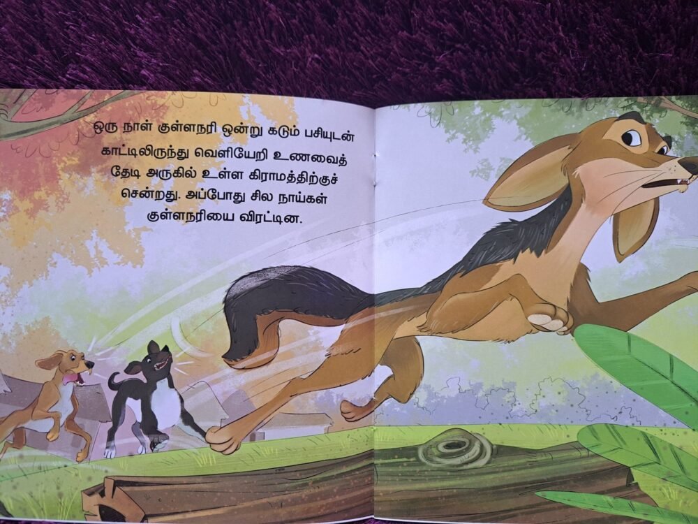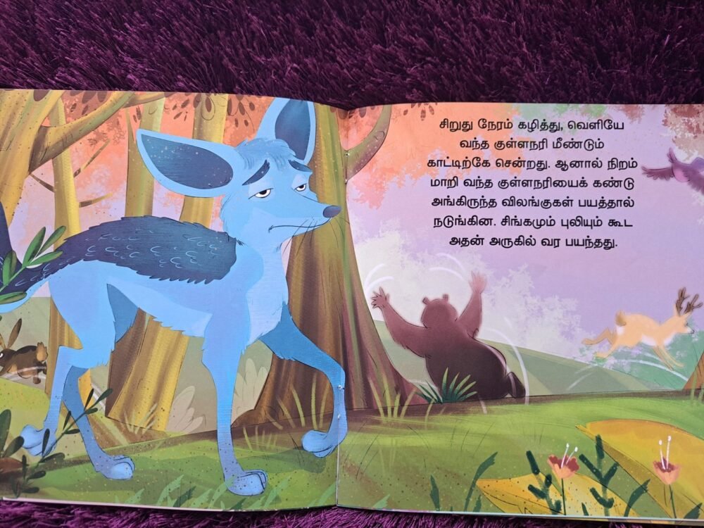 As mothers, we want our children to grow up honest, clever, and wise. Neilanera Kullanari (நீலநிற குள்ளநரி) is a timeless Tamil storybook that brings the famous Panchatantra tale of The Blue Fox to life, making moral lessons easy for children to understand and remember.