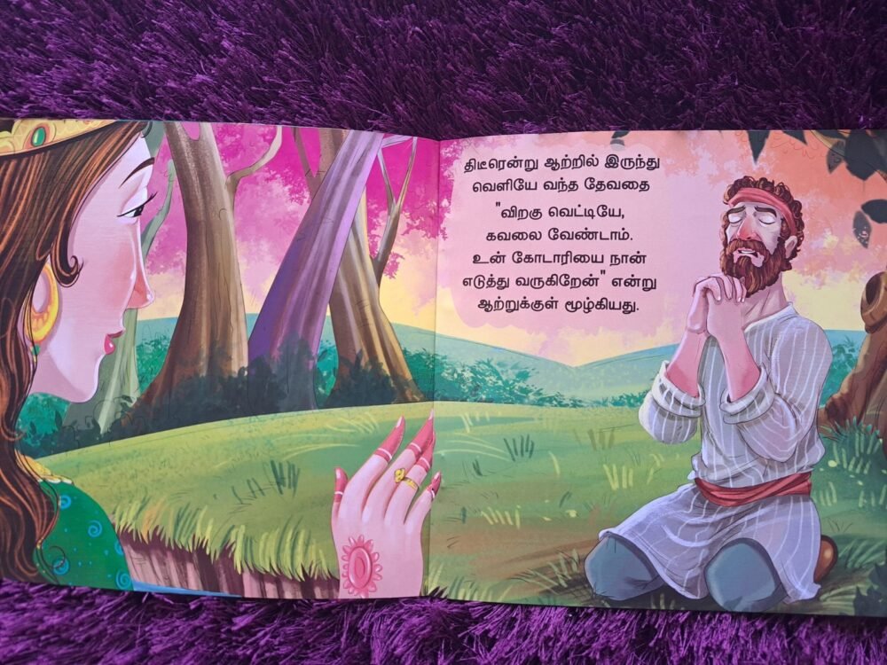 As mothers, we want our children to grow up honest, kind, and trustworthy. Nermaiyana Viraguvituyum Thevathiyum (நேர்மையான விறகுவெட்டியும் தேவதையும்) brings to life the timeless fable The Honest Woodcutter and the Fairy, helping children understand that honesty and integrity are always rewarded.