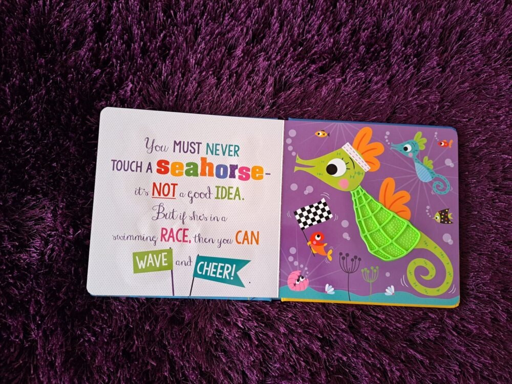 Dive into ocean fun with Never Touch A Shark!, a playful touch-and-feel board book perfect for toddlers and preschoolers. With silly rhymes, vibrant illustrations, and engaging silicone textures on every page, children will giggle while exploring the silly “dangers” of touching ocean animals. Perfect for tiny hands and early learning.
