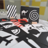 • High-contrast colors (black, white & red) – Supports early visual development