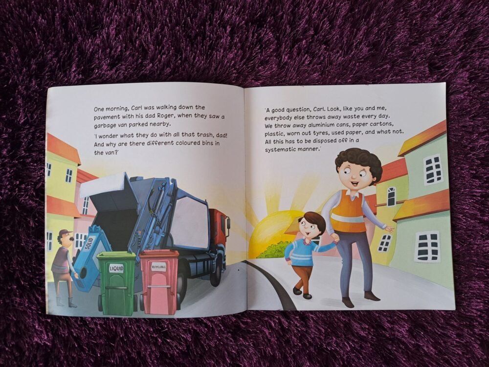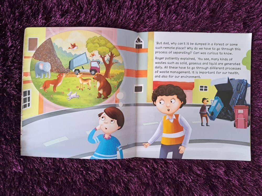 The book avoids complex explanations and focuses on easy actions children can relate to, such as using bins, keeping their home and school clean, and respecting the environment. This makes it a reassuring choice for mothers who want to teach responsibility without pressure or confusion.